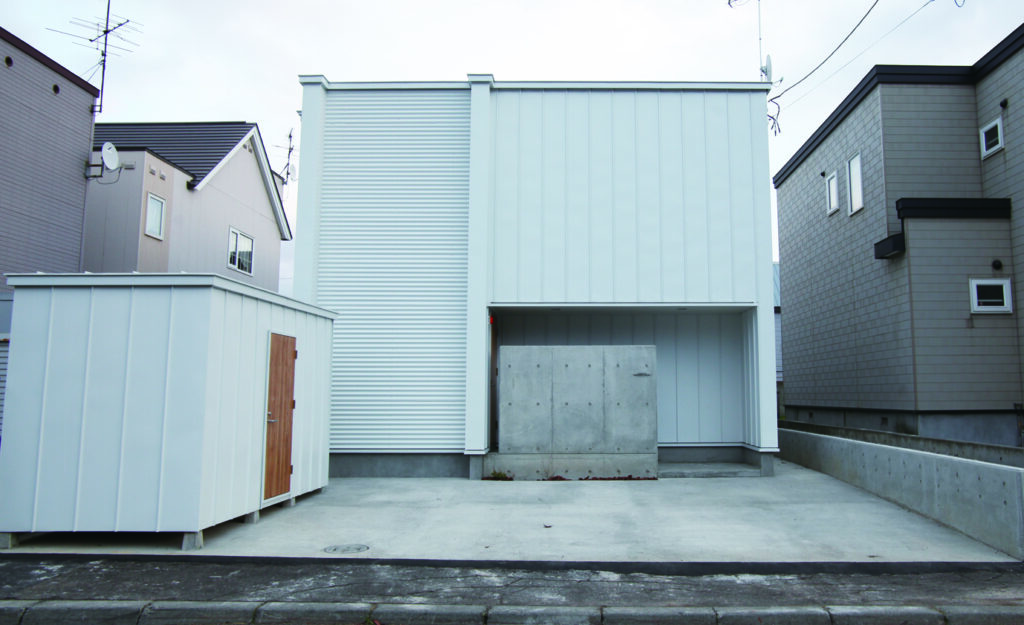 シンプルなフォルムに、無機質なコンクリートと木目のアクセントが映える外観です。
