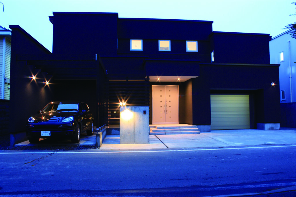 堂々とした黒の外観に、灯りが美しく浮かび上がる外観デザイン。