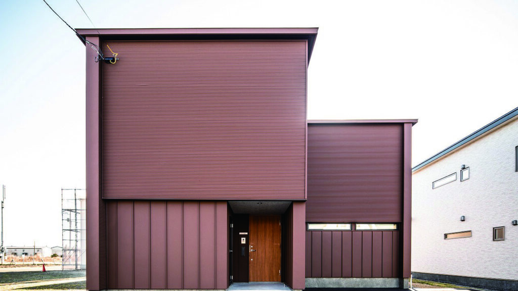 マットな質感の外壁と、縦ラインを活かした端正なフォルムが印象的。窓の配置にもこだわり、外からの視線を抑えながら、しっかりと採光を確保しています。